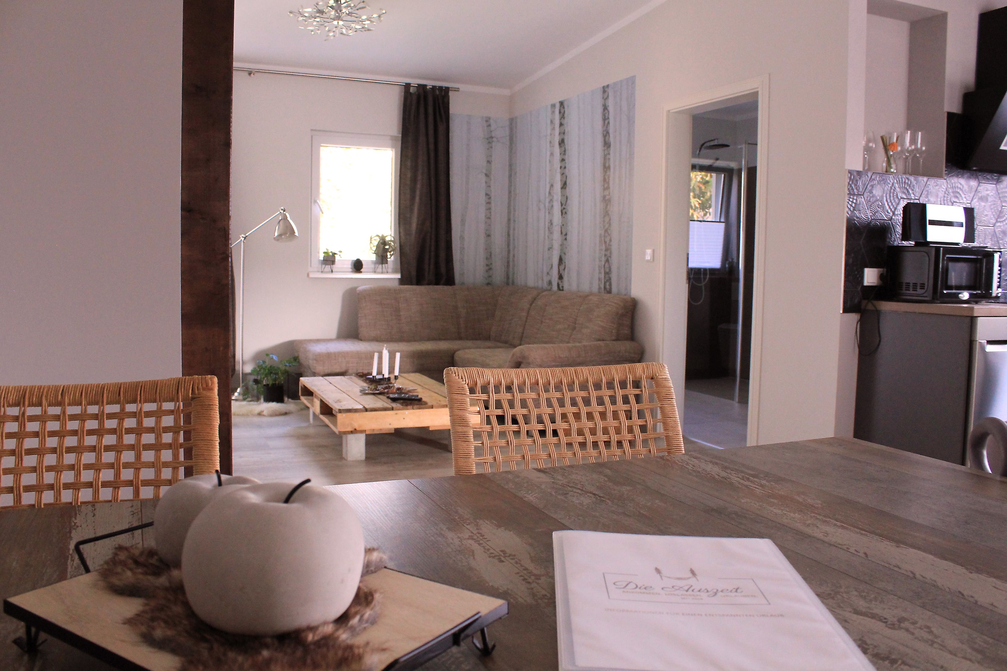 Ankommen könnte nicht schöner sein: Die 85 m² große, vollausgestattete 3-Zimmer-Ferienwohnung besticht durch ein modernes Design und liebevolle Details. In der umfangreich ausgestatteten Küche wird das Kochen und Backen zum reinen Vergnügen − den Einkaufsservice gibt es auf Wunsch dazu. Im offen gestalteten Wohn- und Essbereich entspannt es sich herrlich nach einem Tag im Grünen und das Badezimmer mit begehbarer Dusche ist eine kleine Wellnessoase.