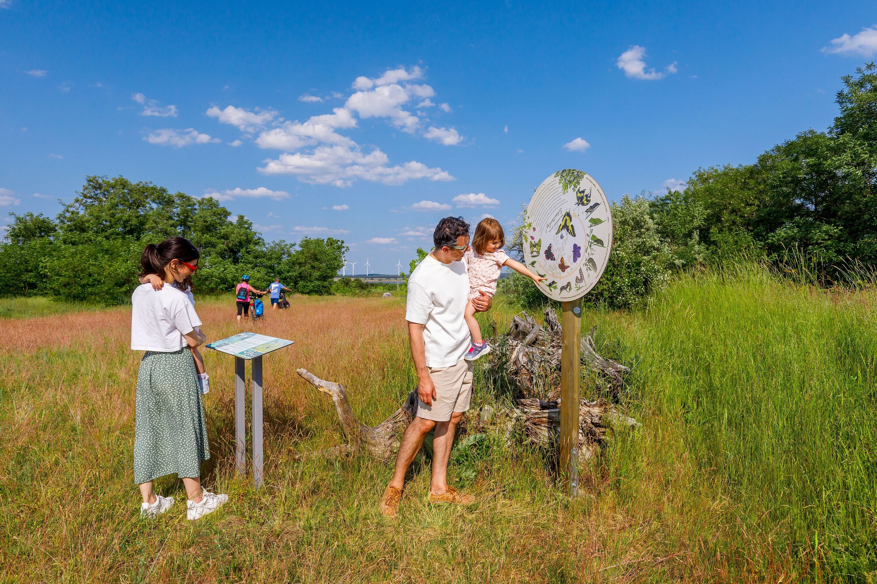 Folgen Sie rechts der Merzdorfer Bahnhofstraße und biegen am restaurierten Merzdorfer Bahnhofsgebäude links auf die L50 Richtung Cottbuser Ostsee. Der Aussichtsturm ist schon von Weitem sichtbar. Am Fuß des Turmes finden Sie umfassende Informationen zum ehemaligen Tagebau und zur Entstehung des Sees. 173 Stufen wollen erklommen werden, um die riesigen Ausmaße des künftigen Cottbuser Ostsees zu erkennen. Nach dem Abstieg fahren Sie links zur kleinen Schranke und setzen Ihren Weg danach auf der abfallenden Asphaltstraße fort. Nach etwa 1,5 km erreichen Sie eine Weggabelung, orientieren sich nach rechts und erreichen nach etwa 500 m den Aufstieg zur Schlichower Höhe.